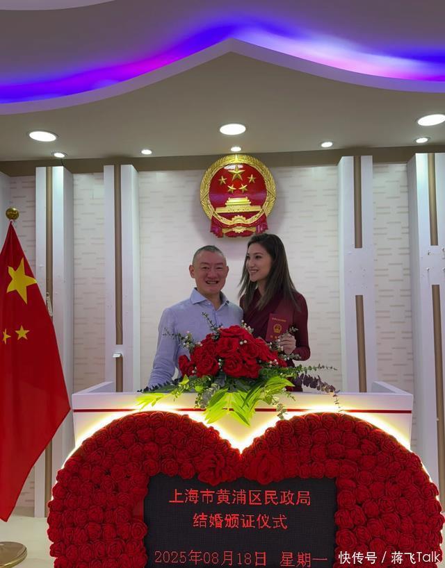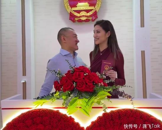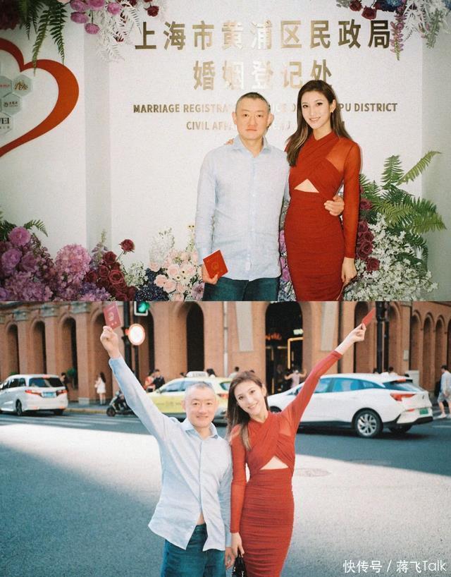 这张照片是两人领证时候拍的,当时两人站在上海民政局拍照的台子上,让摄影师帮忙拍照。 汪雨看着镜头非常兴奋,大笑不止,第一排牙齿都露出来了大半,手臂紧紧抱着小娇妻。